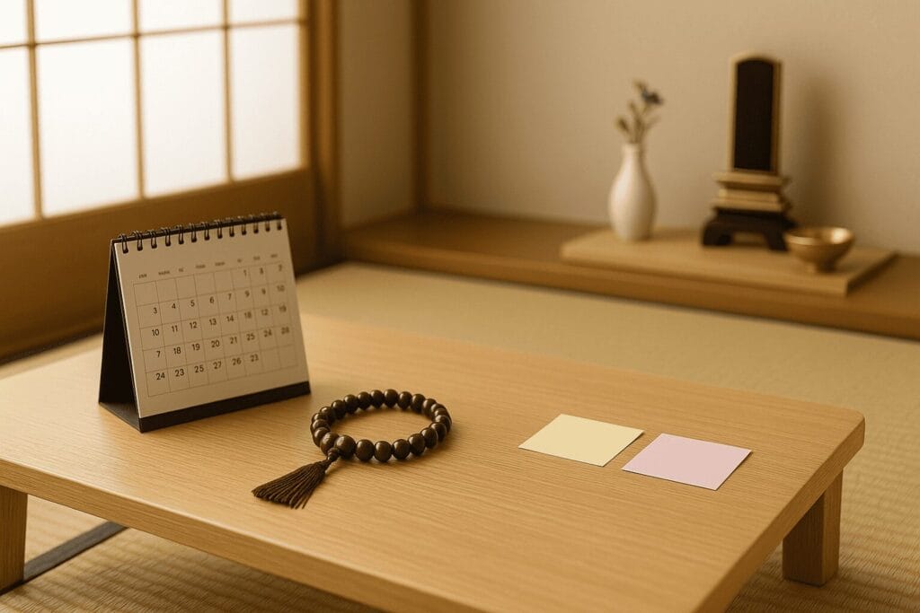 カレンダーに印をつけるときは、「亡くなった日」「四十九日目」「一周忌の候補日」をセットでメモしておくと、あとから日程調整するときにも見返しやすくておすすめです。