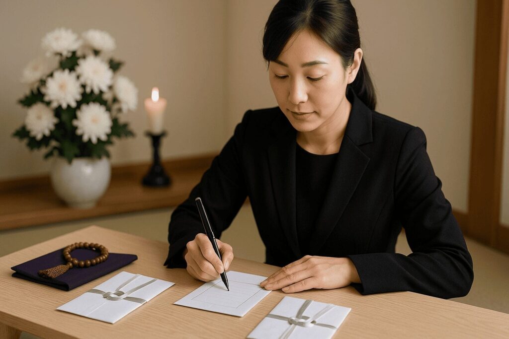 友人同士や職場の有志など、三人以上で香典をまとめる場合は、代表者一人の氏名を書き、その左横に「外一同」や「有志一同」と添える方法が実務的です。より詳細に誰がいくら負担したのかを伝える必要がある場合は、中袋の裏側に連名とそれぞれの金額をメモしておくと、喪家が香典返しを準備するときの参考になります。