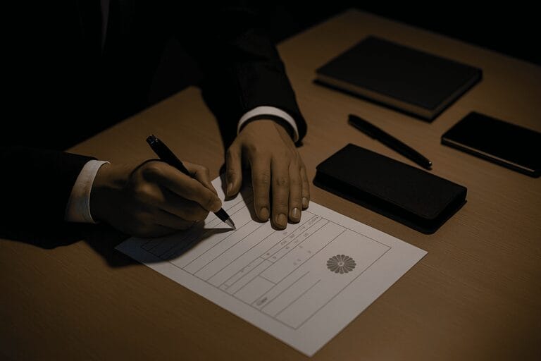 死亡届は、死亡診断書と一体になった用紙を使い、死亡の日から数えて7日以内に市区町村役場へ提出することが法律で定められています。ただし、この「7日」という日数はあくまで一般的な目安です。正確な取り扱いはお住まいの自治体の公式情報を必ずご確認ください。詳しいルールは、法務省の案内でも確認できます。(出典:法務省「死亡届」)