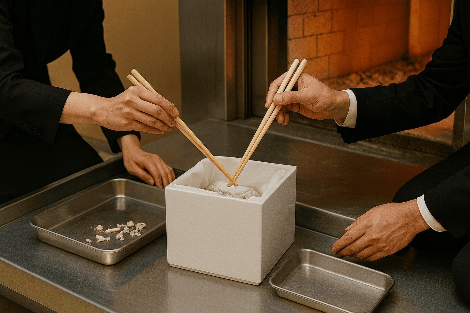 衛生・安全の観点からも、長箸の使用は合理的です。高温燃焼を経た焼骨に素手で触れることを避け、焼骨を安定して扱うための道具として適しています。