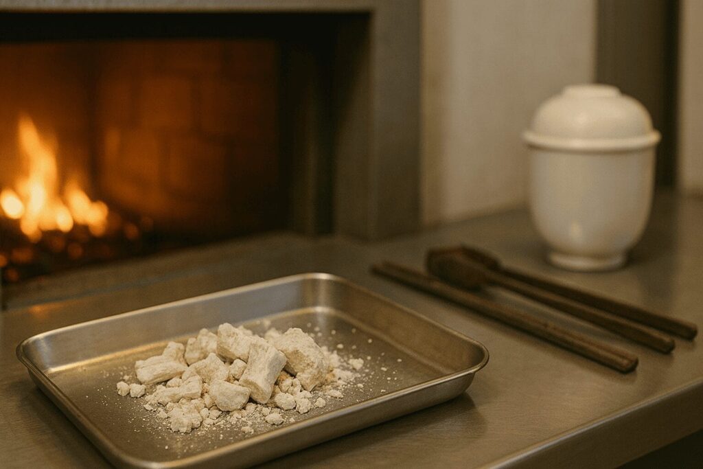 残った骨や灰は「残骨灰」と呼ばれ、斎場内で適切に処理されます。自治体によっては、残骨灰を専門業者に委託して無害化処理を行った上で供養塔へ納めるケースもあります。